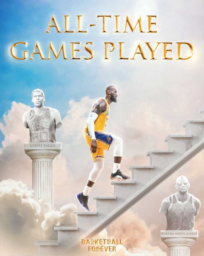 NBA官方还晒出勒布朗的一项海报写道:最多赛季、最多登场时间、最多得分、如今勒布朗登场数也是最多,他又为他无与伦比的职业生涯履历增添了一项历史纪录。戴上皇冠。